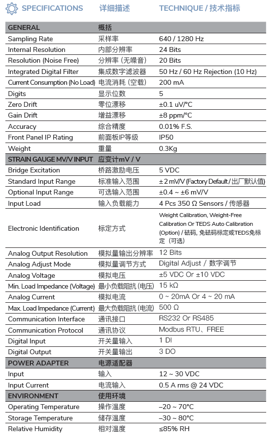 • Support Maximum 1,000,000 Divisions 4800 ~ 230400 Baud Rate Adaptive Communicate