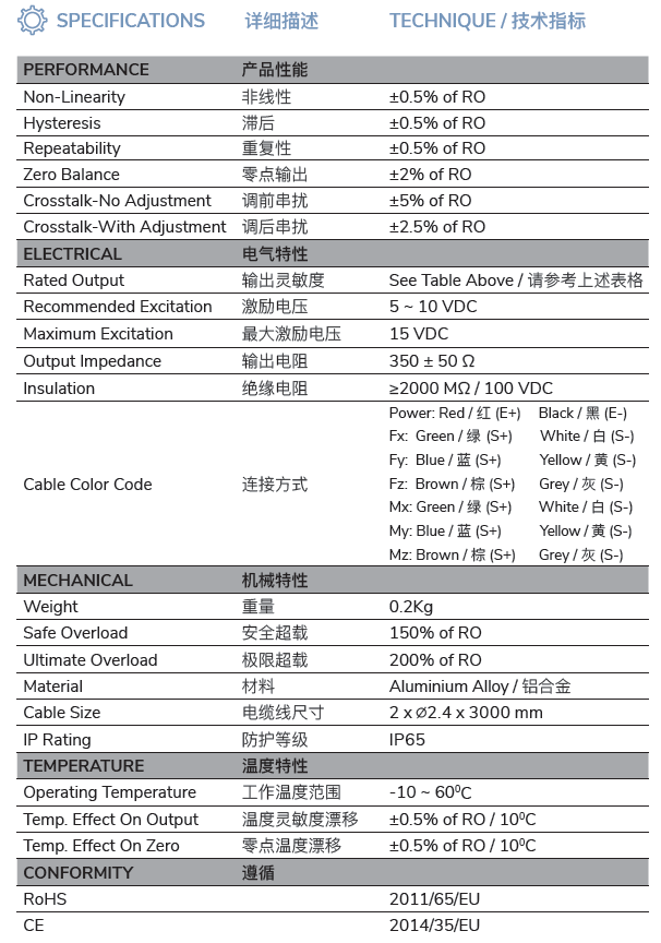 • Six Dimensional Force Sensor