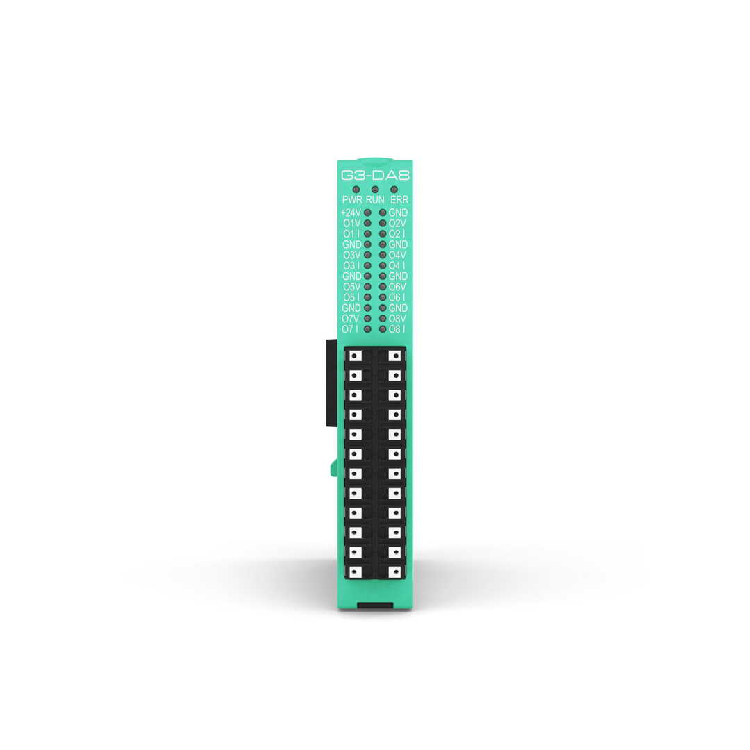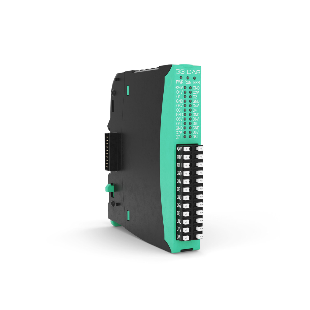 G3-DA8 can refresh 8 analog outputs in less than 80μs, allowing fast and accurate closed loop and process control applications in combination with fast Ethernet real time communication protocols.