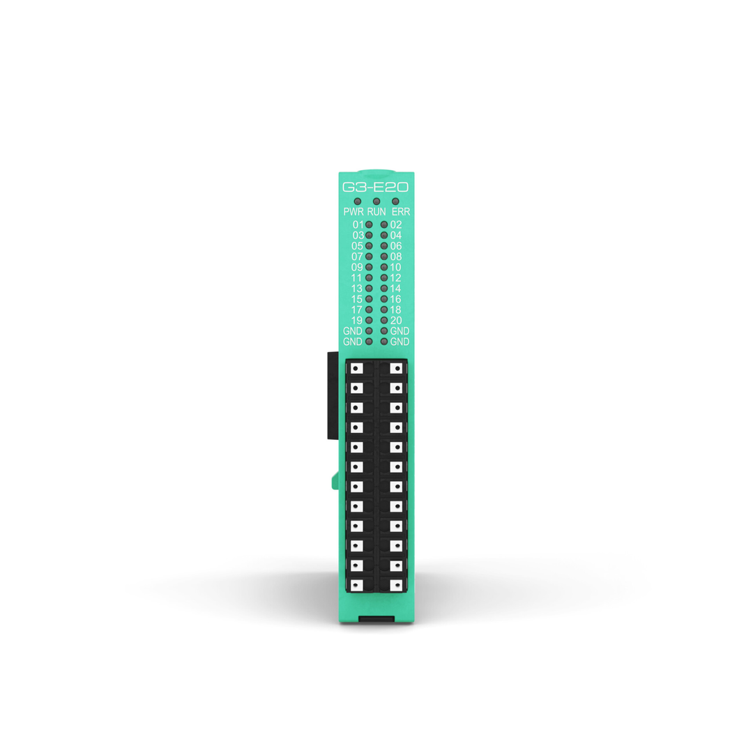 The G3-E20 module has 20 optically isolated digital inputs, 24 VDC, current sink.