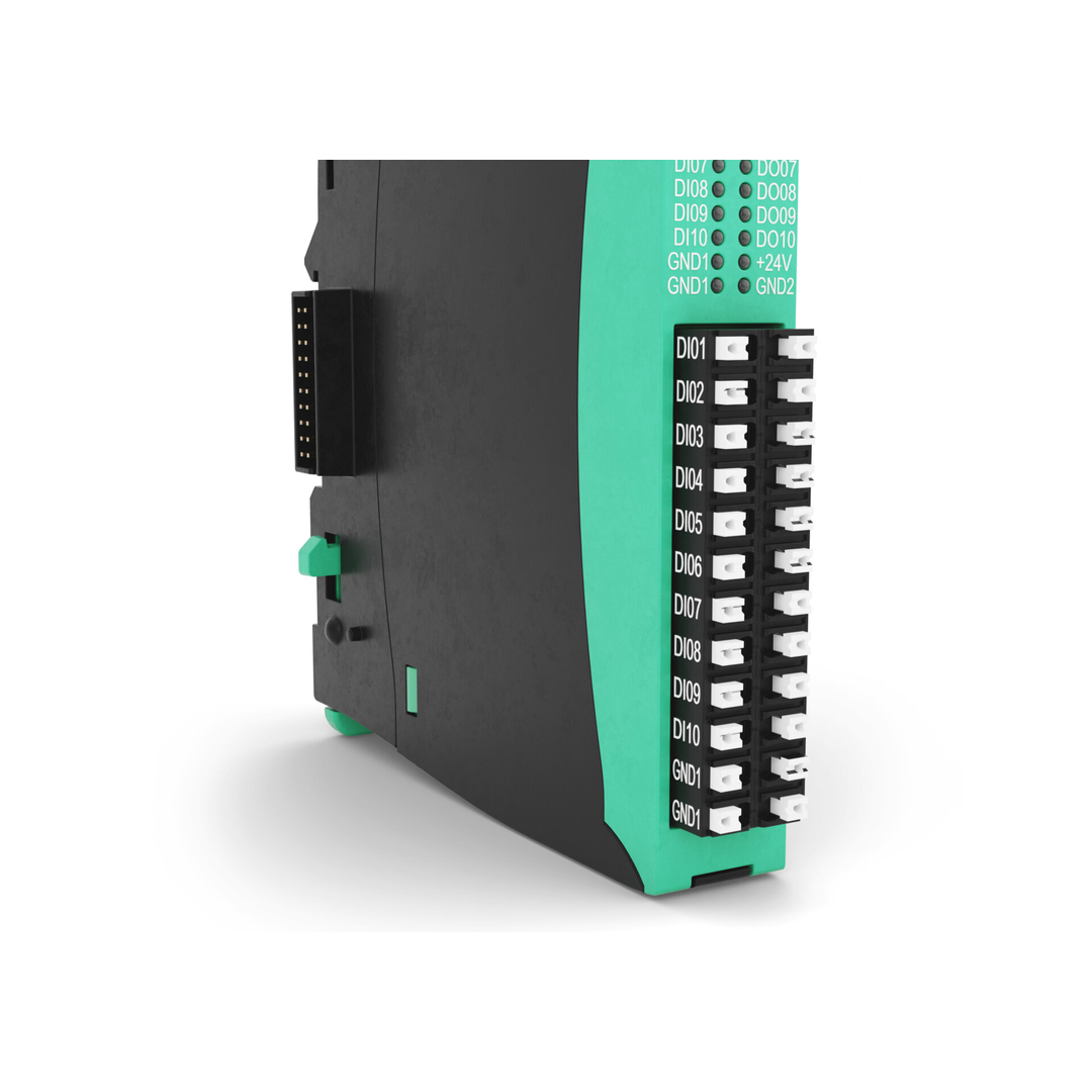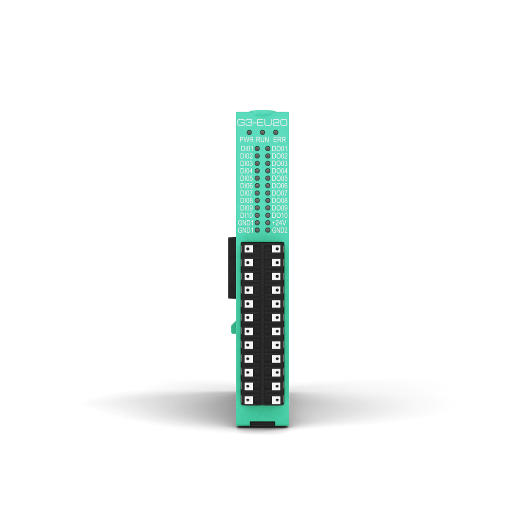 The G3-U20 module has 10 digital input 24Vdc and 10 optically isolated, current-source digital outputs at 24 Vdc max 0.5A for channel.