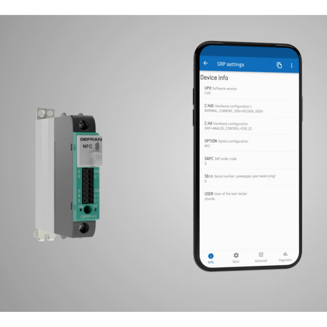 Simple and safe commissioning, maintenance and quick diagnostics are now within the capabilities of devices like SSR. All this thanks to the NFC technology, which allows to extend the user interface using normal Smartphone or Tablet as intelligent configurators. Thanks to an intuitive graphical user interface, setup or diagnostics are particularly easy.
