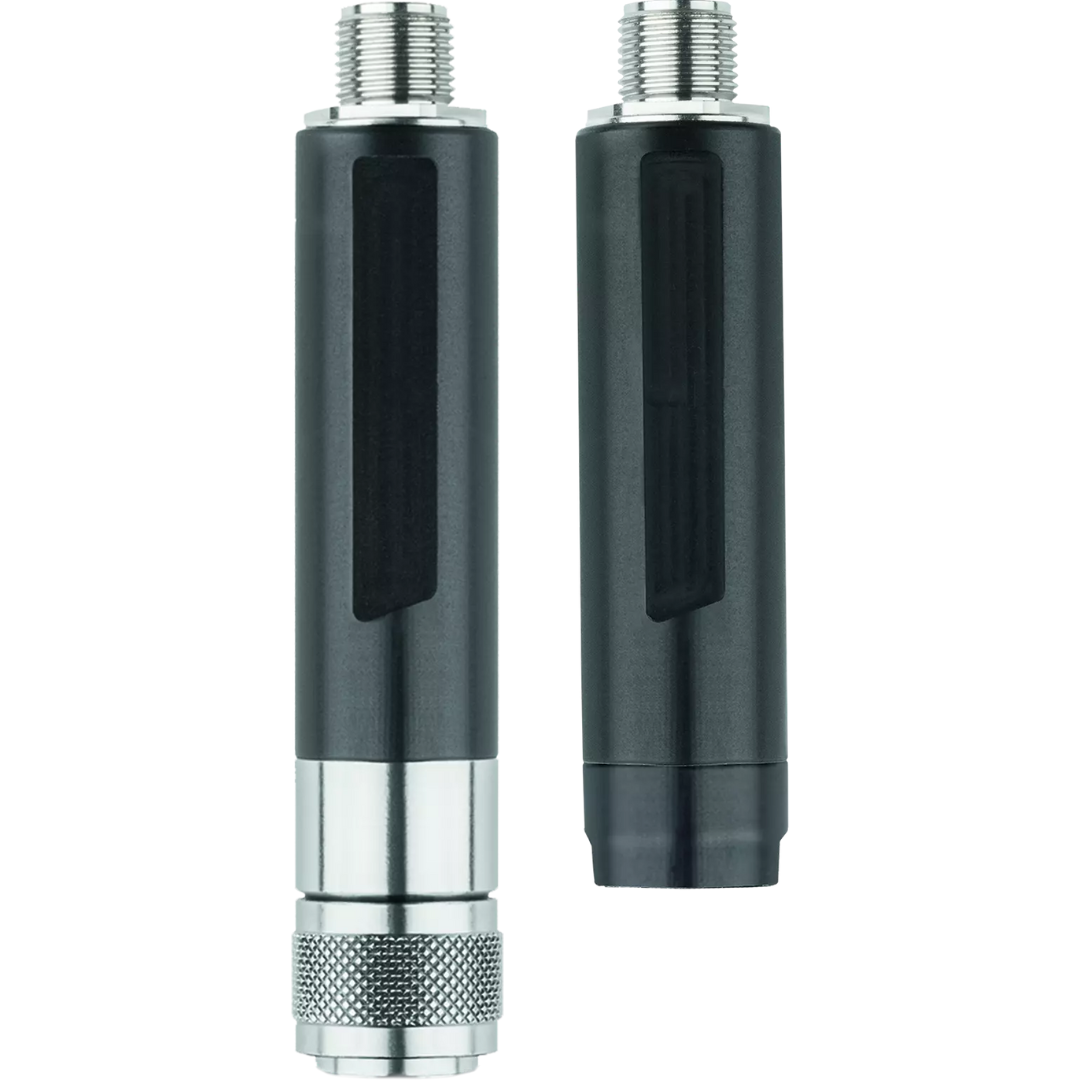 This transmitter permits transmission of the measured value from the sensor to the measuring or automation device via digital bus communication or as an analog signal. The digital device version of the transmitter has a 5-pole M12 plug connection – the analog version an 8-pole one.