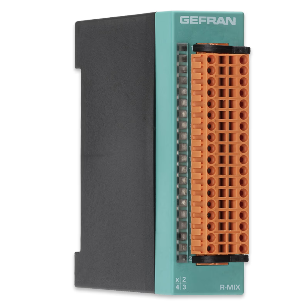 The R-MIX module is equipped with a microprocessor with digital inputs/outputs and analog inputs/outputs, useful for configuring a system with a single board and/or when you want to save space on the back-plane.