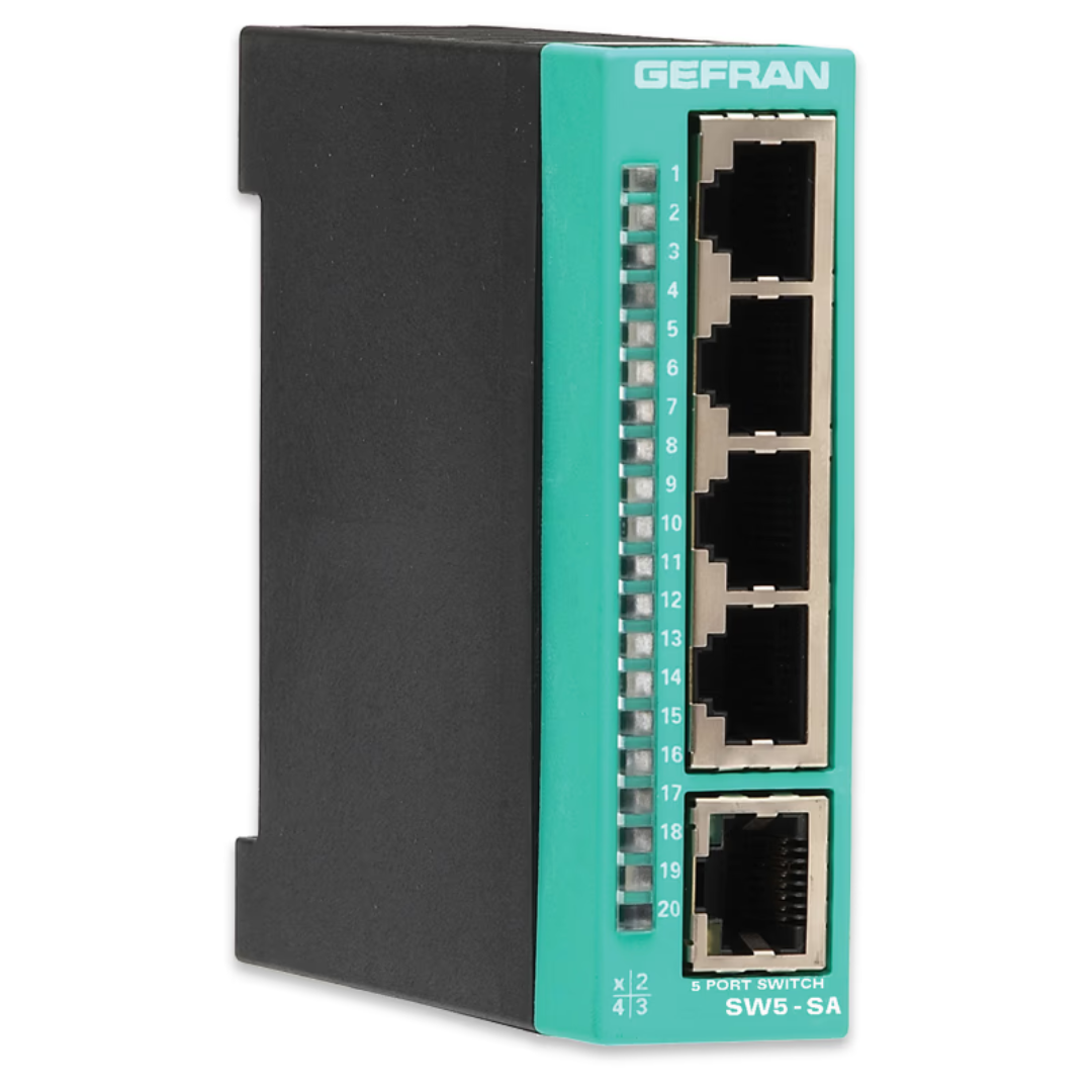 SW5-SA is a switch module with 4+1 Fast Ethernet ports (100 Mbps).