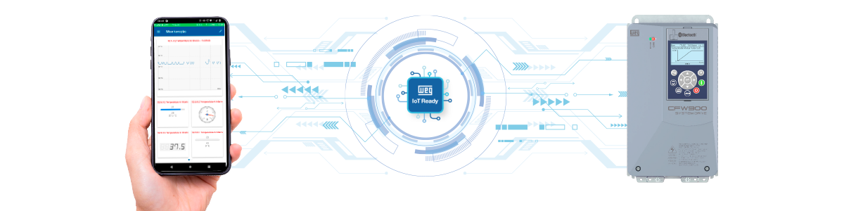 The new CFW900 HMI with Bluetooth® connectivity is ideal for panel builders and technical assistants, as, in conjunction with the new WPS Mobile app, it allows parameter monitoring with customized layout and components as well as parameterization, backup, restoration of parameters, and more.