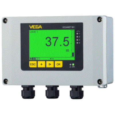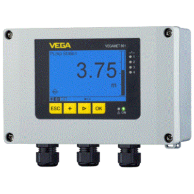 The VEGAMET 862 controller feeds the connected 4 … 20 mA or HART sensors, processes the measured values and displays them. A large display for data visualisation is integrated in the housing designed for rough field conditions. It enables a simple conversion of pump controls, flow measurements on open channels and weirs, totalizers, data loggers, difference, sum and average value calculations. With VEGAMET 862, limit values can be monitored reliably and relays can be switched, e.g. for an overfill protection according to WHG.