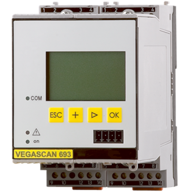 The VEGASCAN 693 is a controller and display instrument for up to 15 HART sensors. It processes the measured values received via HART multidrop and displays the values. Hence measurement results from level, gauge and process pressure measurements can be easily made available to control systems, visualizations and the remote data transmission. Interfaces and functions for the connection to networks and the remote data transmission are integrated. It is particularly suitable for applications in the local and global inventory management.